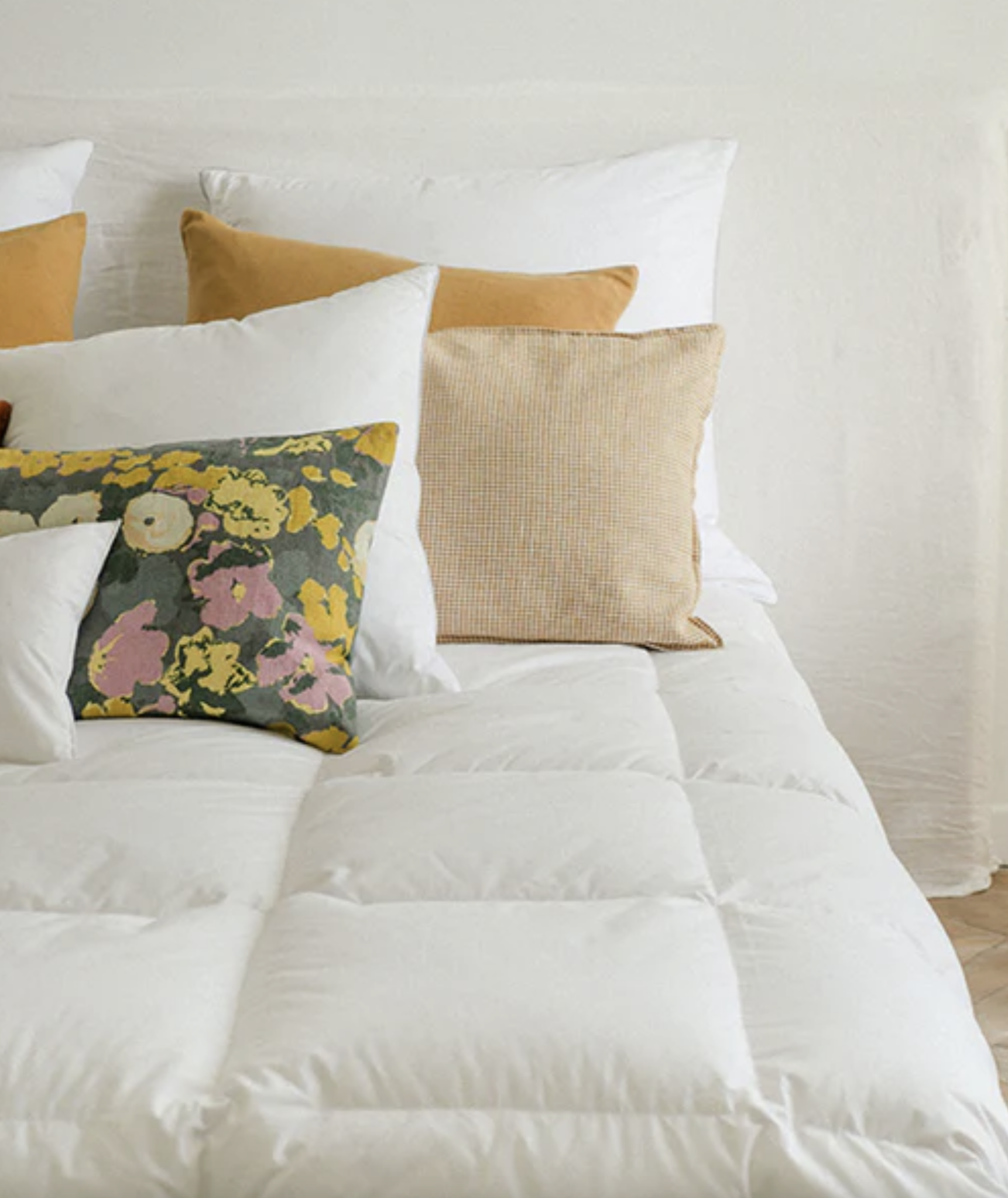 Garnissages d’exception : duvet et plumes d’oie et de canard, soigneusement sélectionnés pour leur légèreté et leur chaleur incomparables.