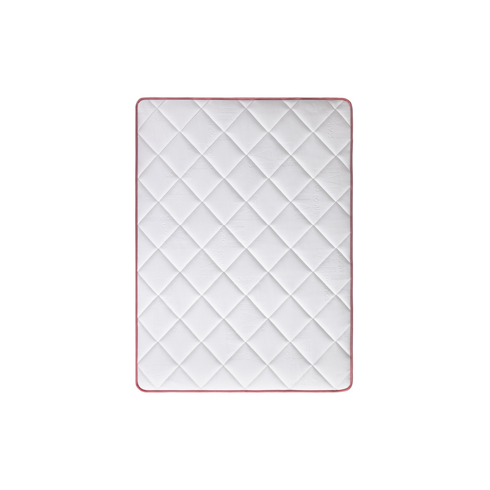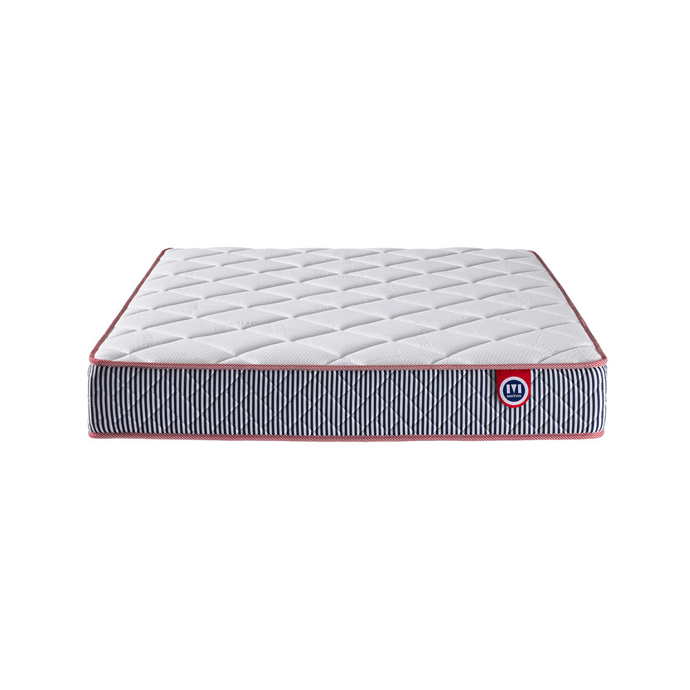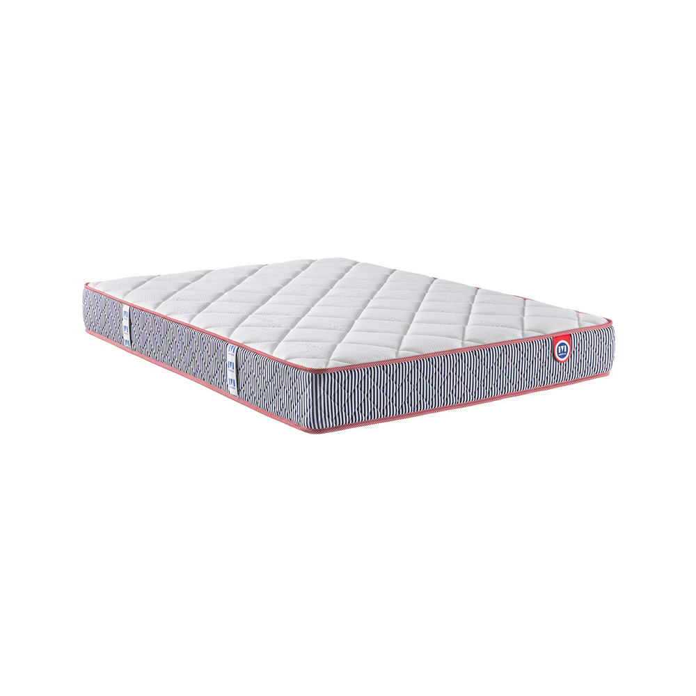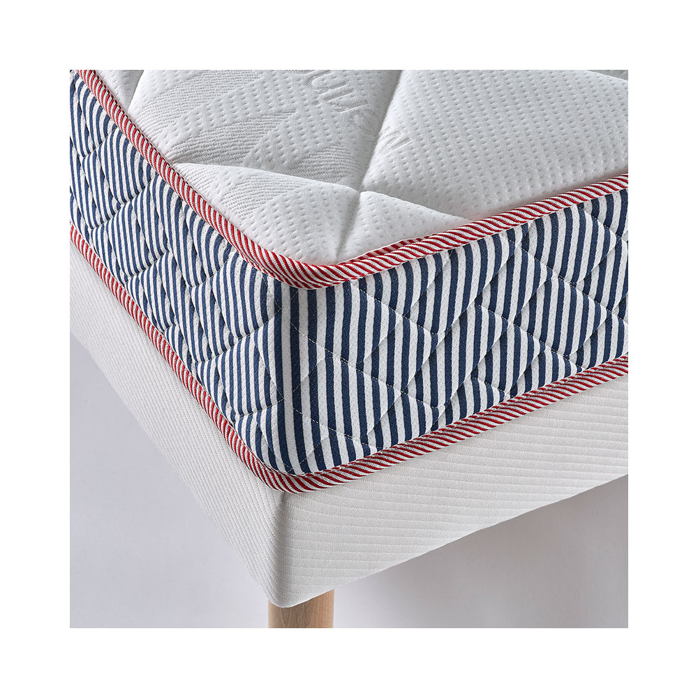 Cette année, nous fabriquons 100 % de nos ressorts à Vesoul. Ouate et feutre sont 100 % recyclés, 90 % de notre acier l’est aussi. Avec ses rayures tricolores et son design joyeux, nos matelas la portent haut, cette fierté du made in France.