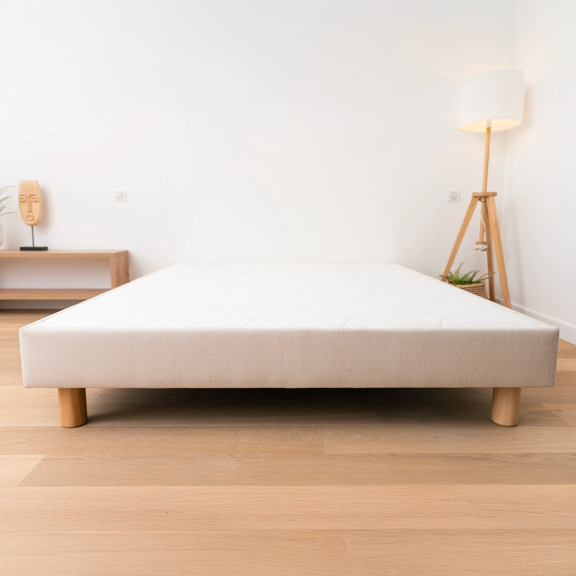 - Sommier à lattes rigides recouvertes de 3 cm de fibres de confort (900g) + d’un plateau piqué sur 1 cm de mousse de confort