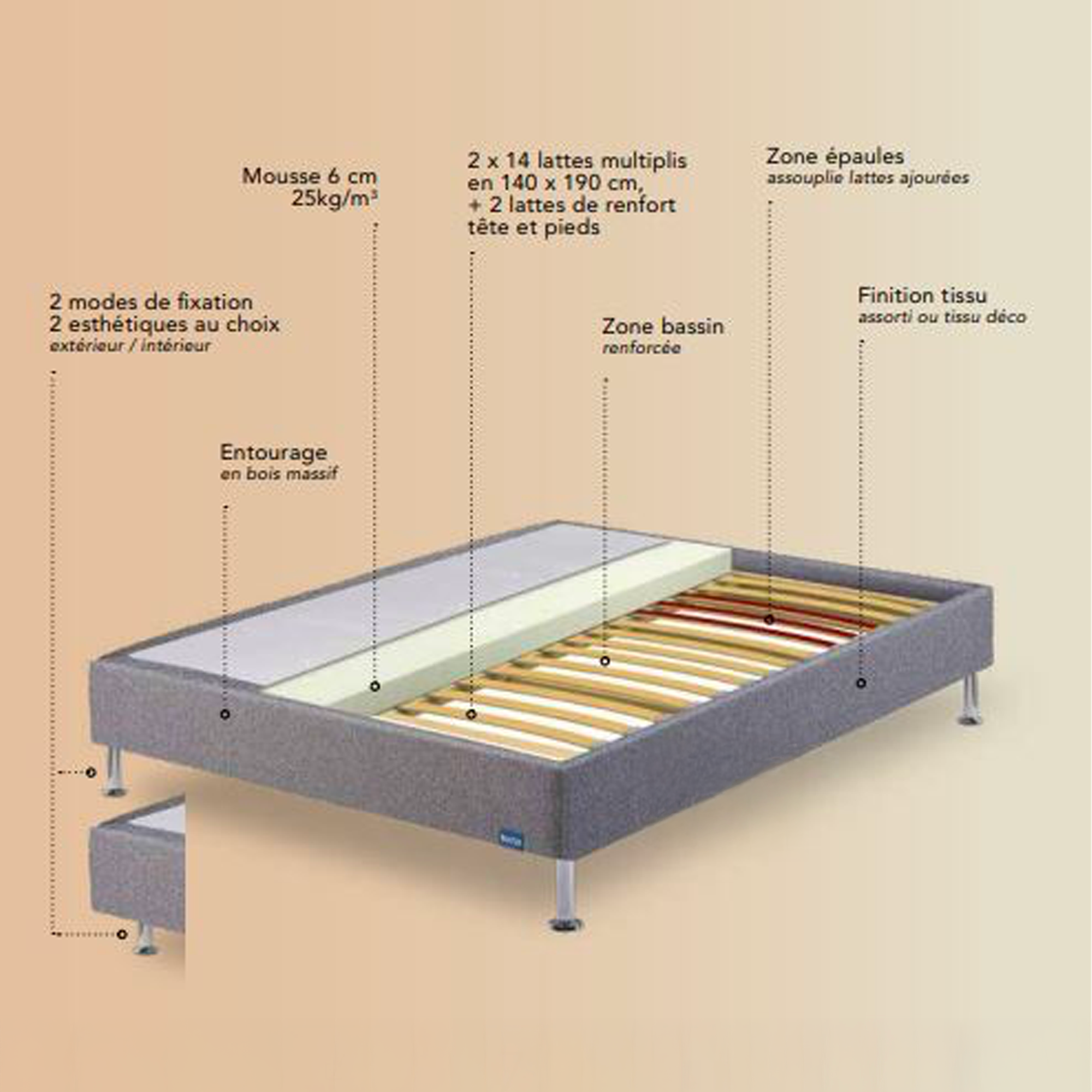 **Tissu face sommier : 100% polyester, tissus bande : 2/3 83% polyester, 14% viscose, 3% lin, 1/3 100% polyester
